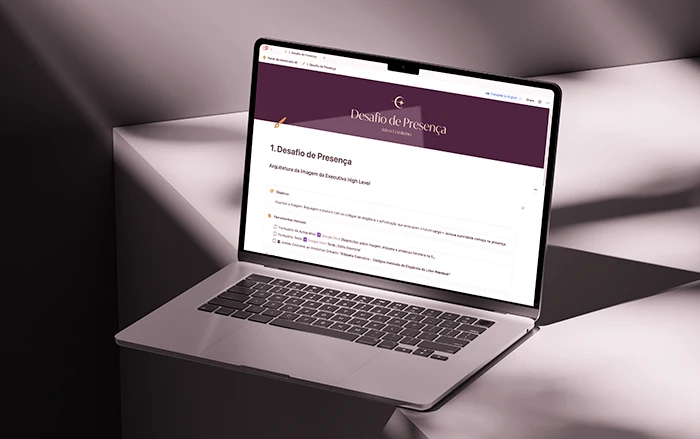 Você ativa sua presença executiva. Refina seu pitch, atualiza seu LinkedIn, e começa a ser notada por lideranças, dentro e fora da sua empresa.