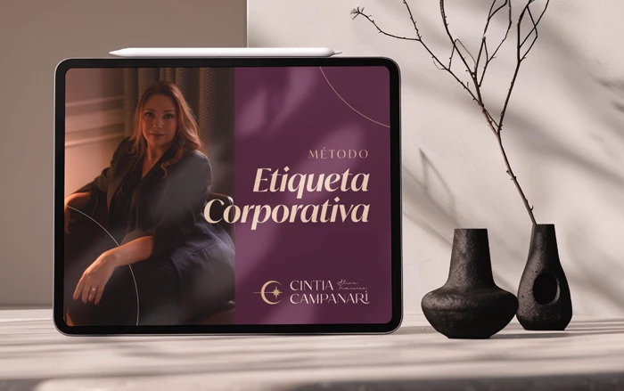 Irei te conduzir em um método autoral de etiqueta corporativa que irá te fazer ser vista como executiva seja lá onde você estiver [em reuniões, viagens, palestras, almoços, eventos…]